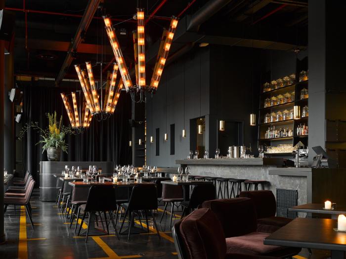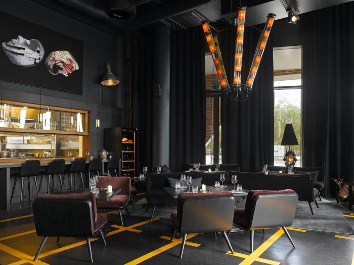 Black walled bar with nice music and also serving food. Dramatic decor. Part of a hotel situated in the warehouse district of Hamburg which is still being developed so not a lot going on. It was a 10...