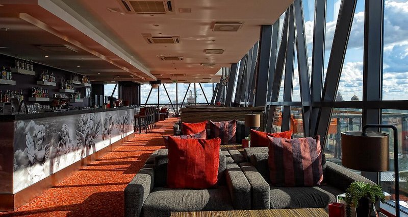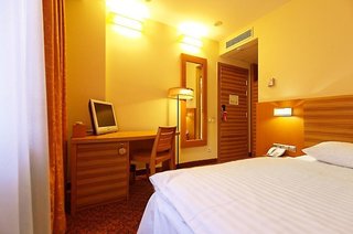 Convenient place. Near the city center. Near the theaters. Good food in the restaurant. Great restaurant. On the last floor you can see the beautiful panorama of the city. Serviceable, attentive...