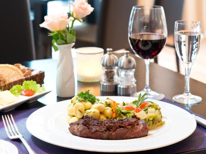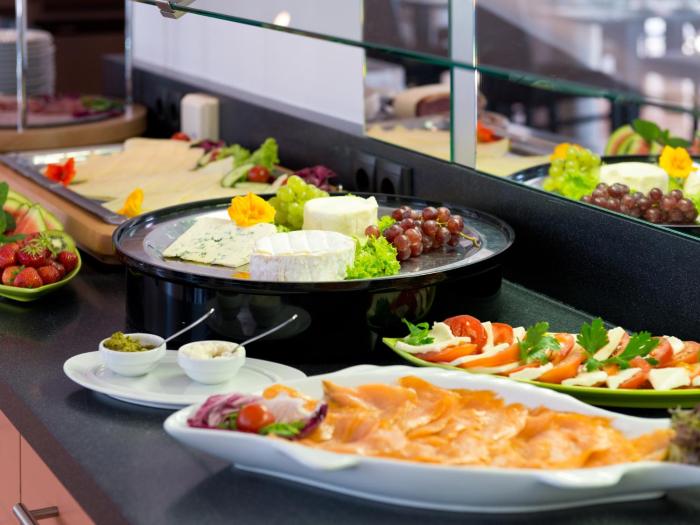 Dining facilities include a dining room, a breakfast room, a café and a bar. Guests can dine in a non-smoking restaurant with an area for smokers. Half board can be booked. At breakfast, guests serve themselves at the generous buffet. Various dishes can be ordered à la carte for lunch and dinner.