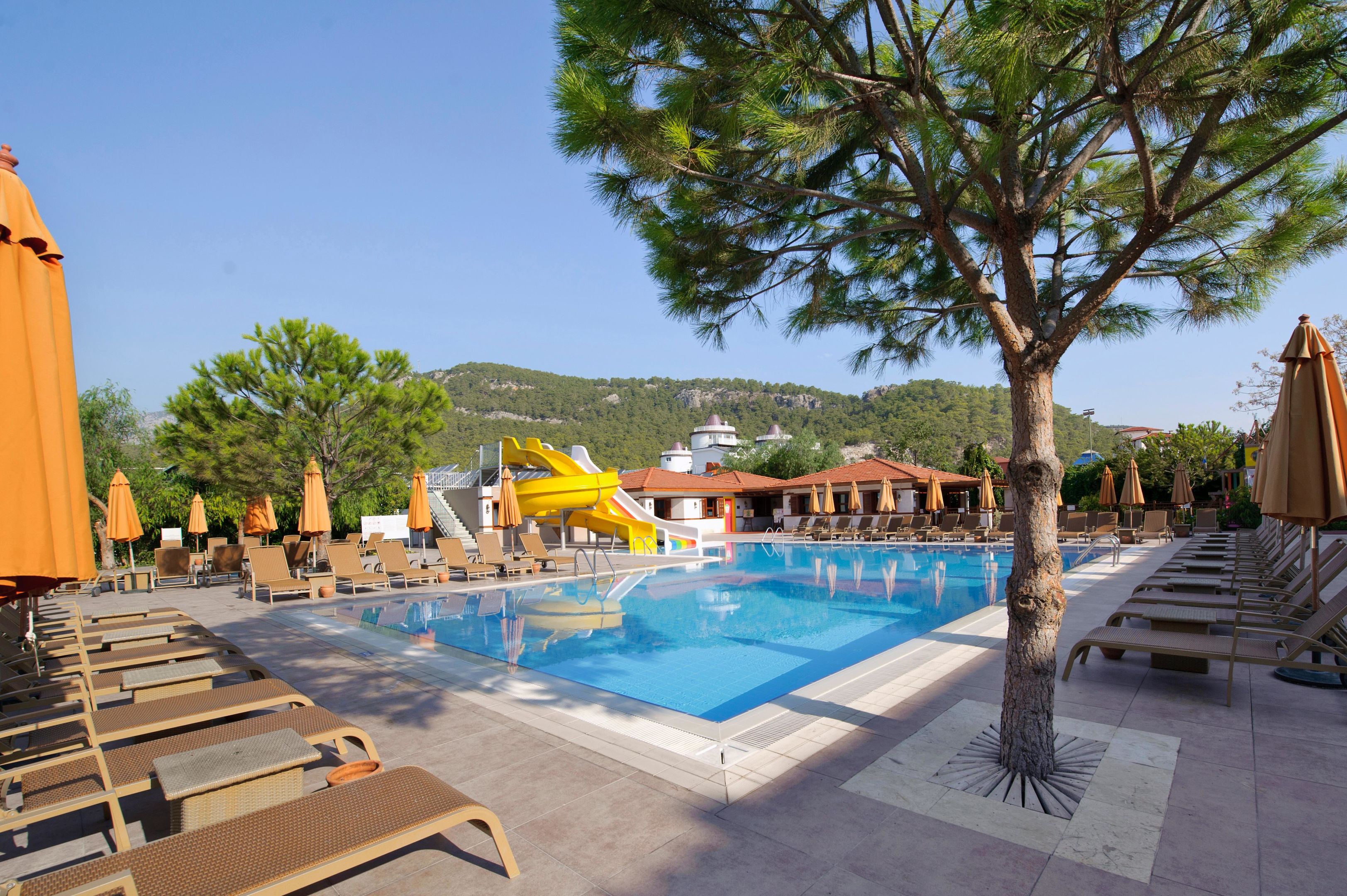 Plenty of active recreation awaits guests in the pool area's 2 Outdoorpools. No matter the weather, swimming is always a possible in the indoor pool. There is also a special swimming area just for kids. Thrills on the waterslide, refreshing drinks at the pool bar and a soothing soak in the hot tub (no extra charge) – the pool area has a little something for every state of mind and body. Umbrellas and comfortable outdoor lounge chairs are available on the sun terrace. The hotel offers outdoor sports, including cycling/mountain biking, tennis, bocce and beach volleyball. A number of sports are available, including water sports such as paddle boating, canoeing, sailing, catamaraning and water aerobics. For a fee, guests can also enjoy water skiing, jet skiing, banana boat rides, diving and parasailing. The hotel offers numerous indoor sports, including a gym, table tennis, badminton, darts, callisthenics and aerobics or, for a fee, billiards. Various wellness options, such as a spa, a sauna, a hammam, a beauty salon and massage treatments, are offered for a fee. Additional recreational activities include an entertainment program, a kids' club, live music and a dance club. Copyright GIATA 2004 - 2021. Multilingual, powered by www.giata.com for client no. 126311