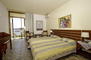Rooms are equipped with air conditioning. Guests have a sea view from the balcony or terrace, which are standard amenities of some rooms. Children's beds can be requested for younger guests. A refrigerator and a mini fridge are standard features. A direct dial telephone, a TV and a radio are provided as well. Bathrooms are equipped with a shower and a hairdryer.