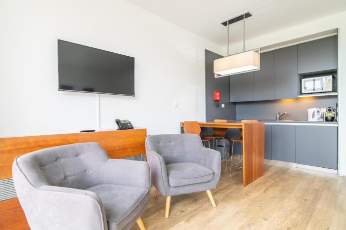 The rooms have a kitchen and a bathroom. Air conditioning ensures comfortable temperatures. A balcony or terrace is among the standard amenities of some rooms. Guests are sure to get a good night's sleep in the sofa bed. Separate bedrooms are available. Valuables can be securely stored in a safe. For self-catering guests, there is a well-equipped kitchenette with a mini fridge, cooktop, microwave, tea/coffee station and dishwasher. An ironing set is provided for guests' convenience. Internet access, a telephone and a television with cable channels are provided as well. Bathrooms are equipped with a shower and a bathtub, as well as a hairdryer.