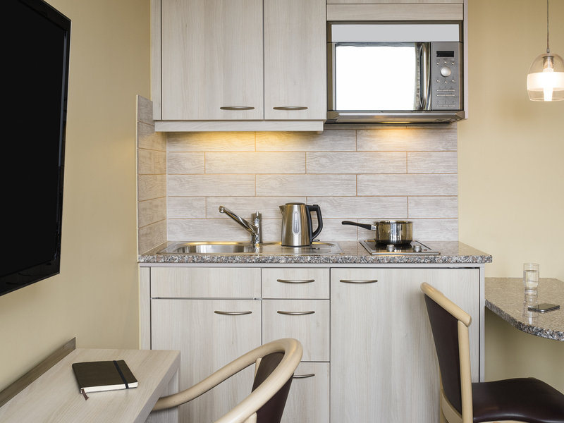 Air conditioning and central heating ensure that rooms maintain comfortable temperatures. The rooms have a double bed and a sofa bed. Valuables can be securely stored in a safe. A fully-equipped kitchenette with a refrigerator, microwave, tea/coffee station and dishwasher, as well as a complete set of utensils, is a standard feature. A telephone, a TV and WiFi provide all the essentials for a comfortable vacation. A hairdryer and a vanity mirror are provided in the bathrooms, which include a shower and a bathtub. The apartment hotel has non-smoking rooms.