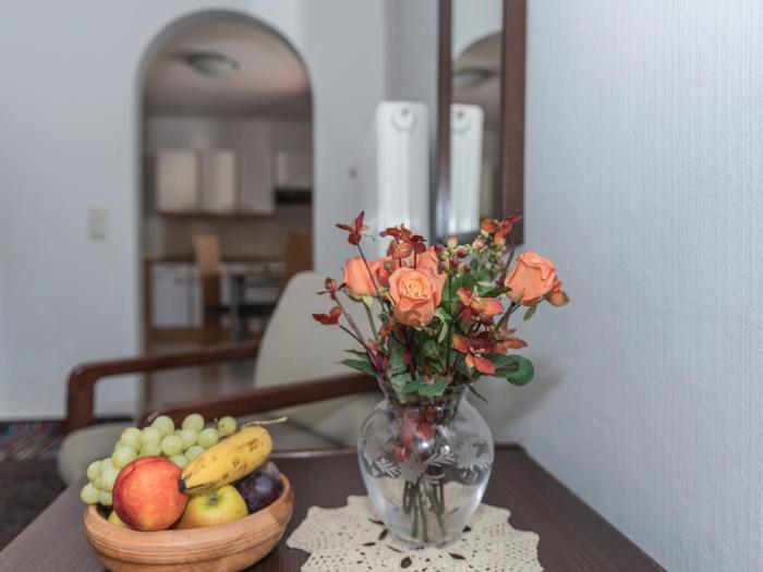 Some rooms have a balcony, which gives guests additional space for rest and relaxation. Rooms include a sofa bed. Separate bedrooms are available. Children's beds can be requested for younger guests. Valuables can be securely stored in a safe. For self-catering guests, there is a well-equipped kitchenette with a refrigerator, cooktop, microwave, tea/coffee station and dishwasher. A telephone, a television with cable channels, a radio and WiFi (no extra charge) ensure optimal comfort. Bathrooms are equipped with a shower and a hairdryer.