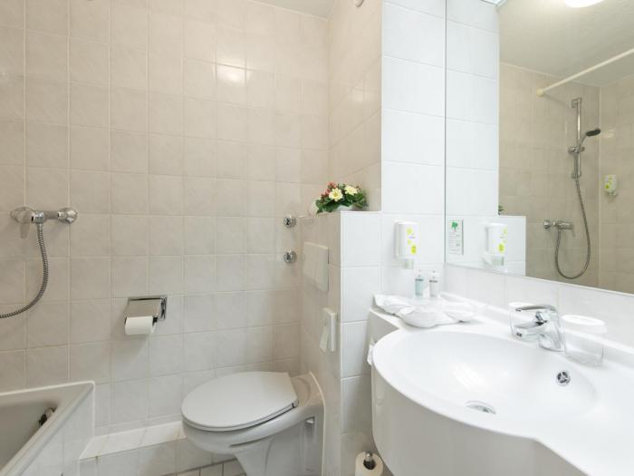 Individually adjustable heating ensures that rooms maintain comfortable temperatures. Some rooms have a balcony, which gives guests additional space for rest and relaxation. All rooms are carpeted and include a double bed. A minibar is provided. A direct dial telephone, a television with satellite/cable channels, a radio and WiFi provide all the essentials for a comfortable vacation. Bathrooms are equipped with a shower and include a hairdryer. Wheelchair-friendly rooms can be reserved. The hotel has non-smoking rooms.