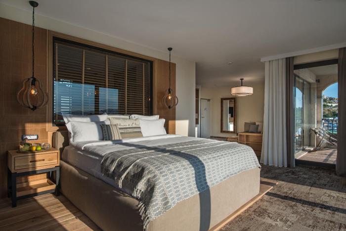 Air conditioning ensures that rooms maintain comfortable temperatures. Guests can enjoy the sea view from a balcony or terrace. The rooms have a king-size bed and a sofa bed. Separate bedrooms are available. Children's beds can be requested for younger guests. There is also a safe and a desk or, for an additional fee, a minibar. Guests will also find a tea/coffee station included among the standard features. Equipped with a telephone, a TV and WiFi (no extra charge), the rooms provide many ways for guests to stay connected and entertained. Slippers are included. A hairdryer and bathrobes are available in the bathrooms, which are equipped with a shower. The hotel has non-smoking rooms.