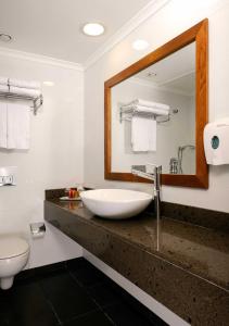Rooms include air conditioning and central heating. All rooms are carpeted and include a double bed. Children's beds and extra beds can be requested for younger guests. A safe, a minibar and a desk are also available. A refrigerator and a tea/coffee station are standard features. An ironing set is provided for guests' convenience. A telephone, a television with satellite/cable channels, a radio and WiFi (no extra charge) are provided as well. The daily newspaper is laid out for guests in the the rooms. Bathrooms are equipped with a shower and a bathtub. A hairdryer, a vanity mirror and bathrobes are available for daily use. The hotel has family rooms and non-smoking rooms.