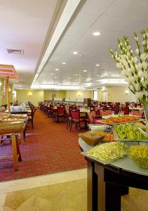 Dining facilities include a buffet restaurant, a dining room, a café and a bar. A bed and breakfast package can be booked. Breakfast and dinner offer culinary delights every day.