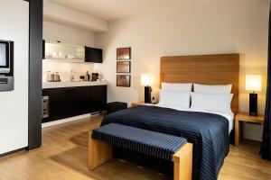 The rooms have a kitchen and a bathroom. Air conditioning ensures comfortable temperatures. Children's beds can be requested for younger guests. Valuables can be securely stored in a safe. A refrigerator, a cooktop and a tea/coffee station are standard features. A telephone, a TV and WiFi provide all the essentials for a comfortable vacation. Bathrooms are equipped with a shower and a hairdryer. The hotel has family rooms, 48 non-smoking rooms and 1 smoking room.