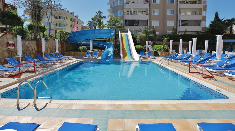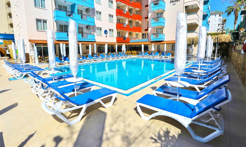 This urban hotel is situated on a main road in Alanya, near a pebble and sand beach. The center with all its tourist hotspots can be reached within around 1 mile. The nearest airport is Antalya (AYT), located approximately 85 miles away.