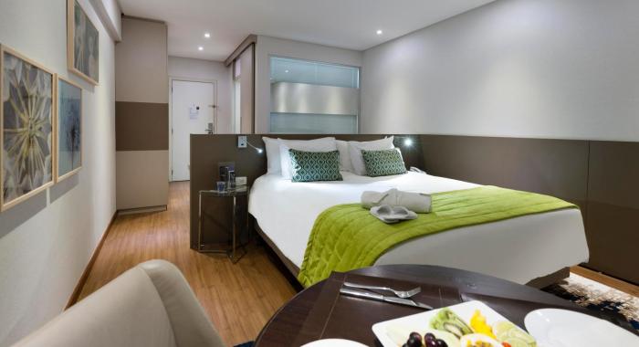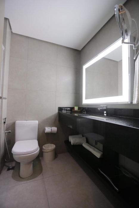 Great location right opposite biggest mall (many restaurants!!) in Goiania. About 20 mins from airport, industrial area for meetings, city center. All one would expect from standard hotel rooms...