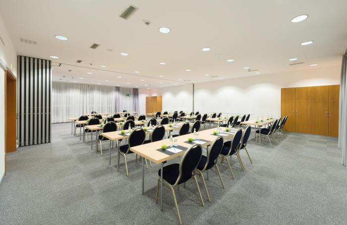 90 double rooms are located on 3 stories and can be reached by elevator. The friendly staff at the reception desk in the lobby are happy to answer any questions. Services and facilities include a coat check, a safe, room service and a conference room. Wireless internet access (for a fee) is provided in public areas. The hotel has wheelchair-accessible facilities. There are a number of shops as well. Guests arriving by car can park their vehicles in the parking lot.