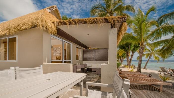 This resort is located in Rarotonga, right on the sandy beach.