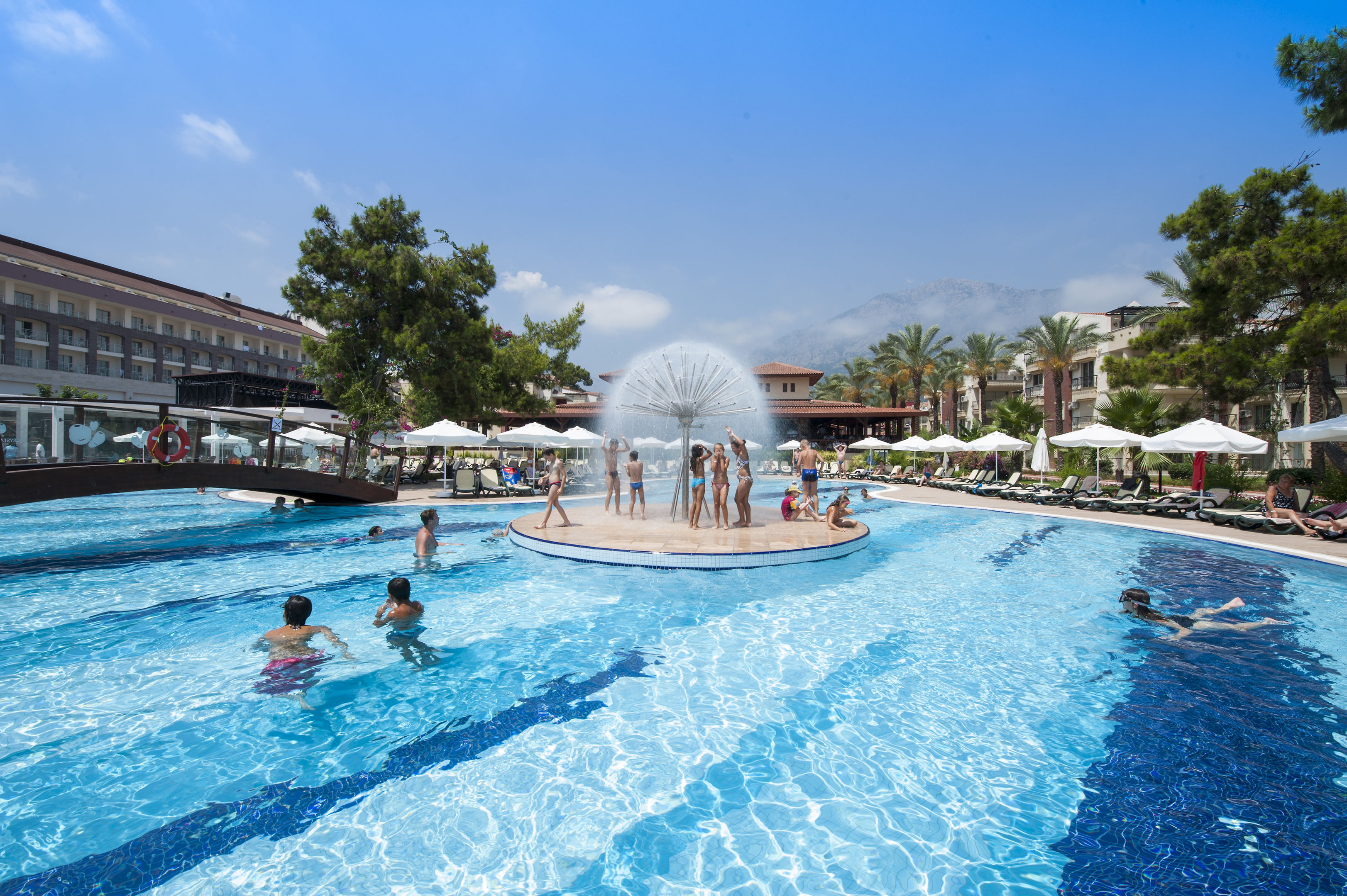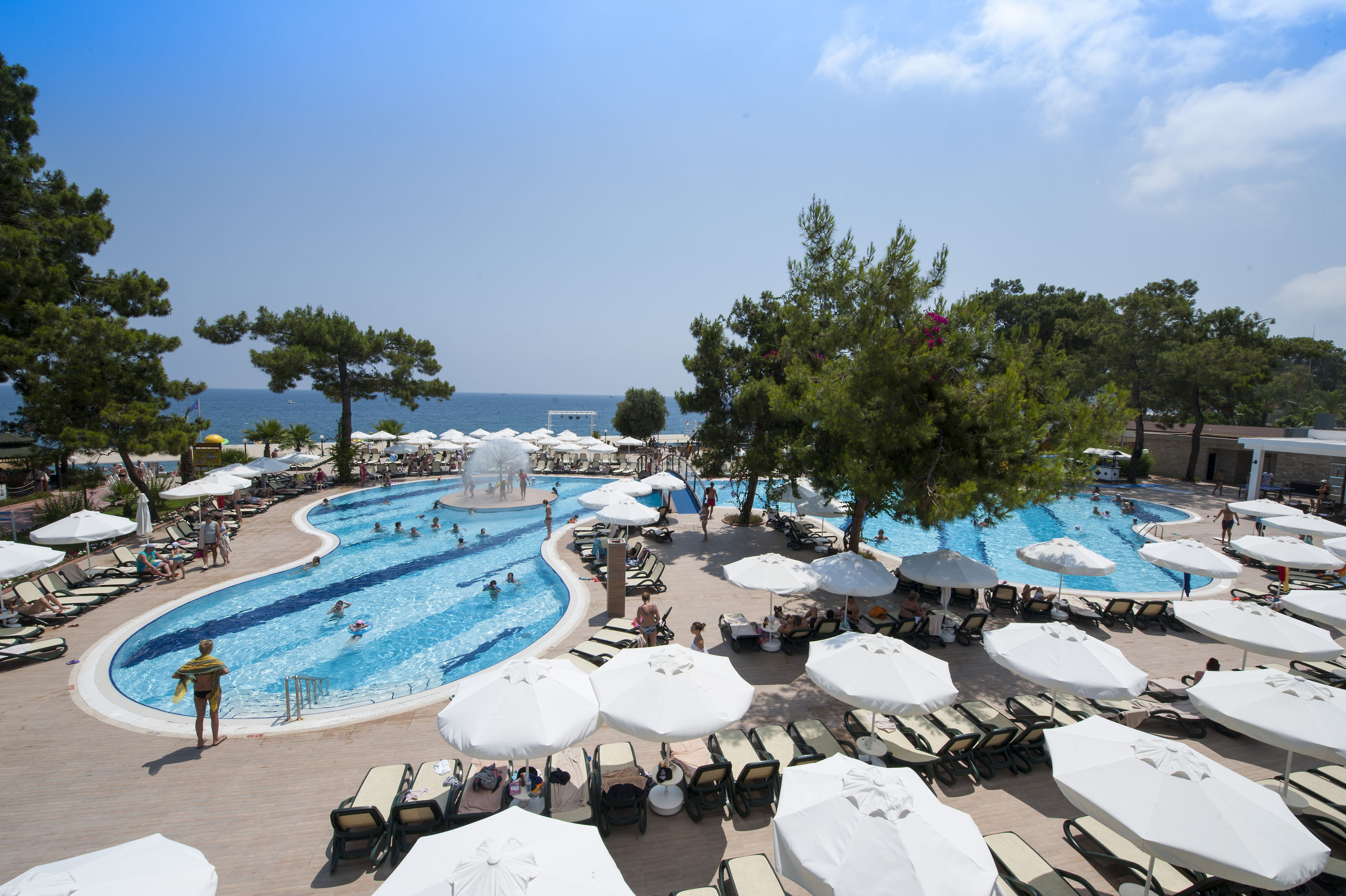 Guests can strike that perfect balance between exercise and relaxation in one of the 3 indoor and outdoor pools. The freshwater pool area, which is in part heated, also has a children's pool. A waterslide and a refreshing drink at the poolside snack bar offer the perfect way to unwind. Outdoor lounge chairs and umbrellas are available on the sun terrace. Those who wish to stay active while on vacation can enjoy bocce and basketball. For a fee, tennis is also available. With aquafit or, for a fee, water skiing, windsurfing, jet skiing, motorboat rides, paddle boating, banana boat rides, canoeing, sailing, catamaraning and diving available, fans of water sports have plenty of options to choose from. The complex offers numerous indoor sports, including a gym, table tennis, darts, callisthenics and aerobics or, for a fee, billiards. There is a wellness area with a spa, a sauna, a steam bath, a hammam, a beauty salon, Ayurveda treatments and a solarium. Subject to charge: massage treatments. Recreational facilities include an entertainment program, a kids' club, a kids' disco, a dance club and a nightclub.