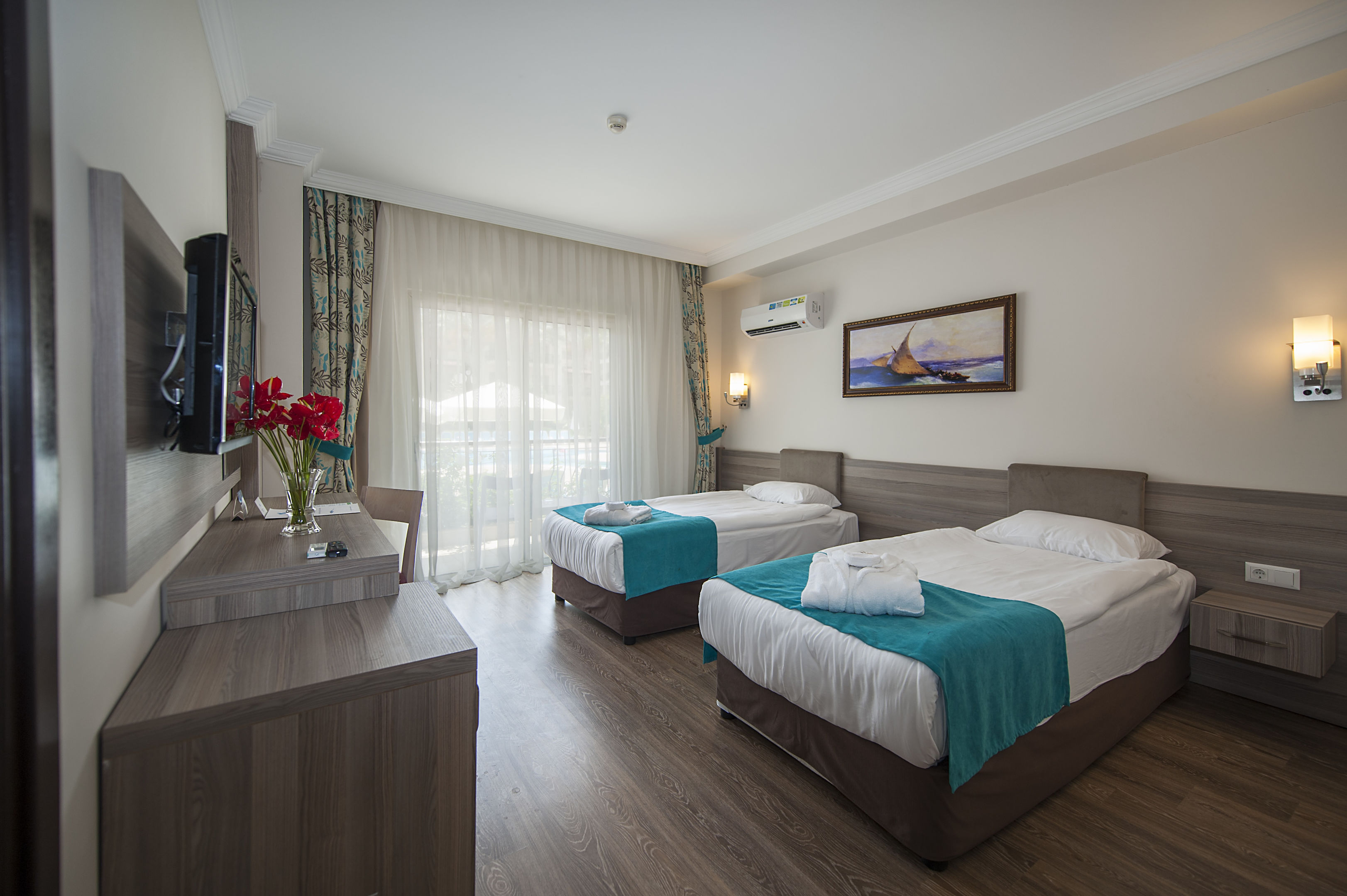 Perfect for beach vacationers, this resort is situated on a main road in Kemer, just a few steps from the sand and pebble beach. The center with all its tourist hotspots can be reached within around a quarter mile. Public transportation stops are just outside the door. It is about 35 miles to Antalya (AYT) Airport.