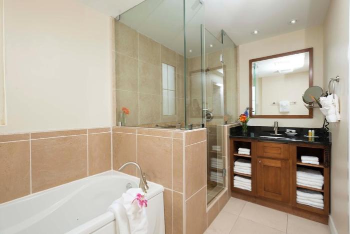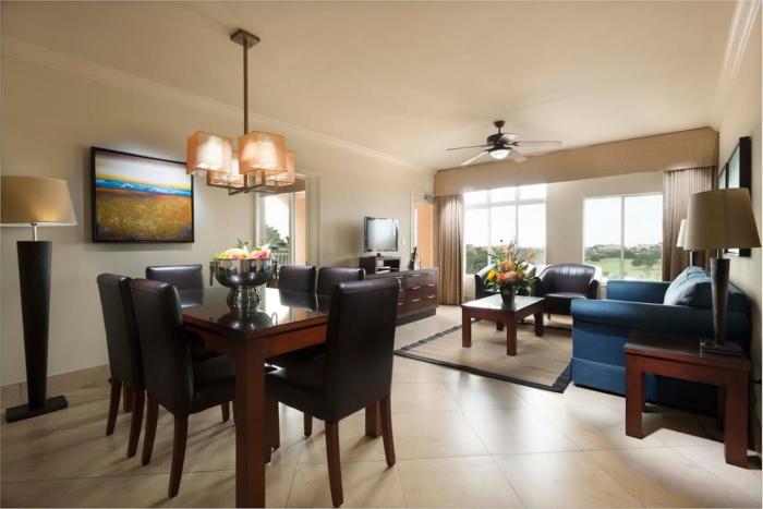 We got a 2 br lock off unit with 2 pull out queen sofas. Perfect for 7 people. They provided daily maid service. The pool is beautiful and the kids enjoyed feeding the iguanas lettuce. Beach is a...
