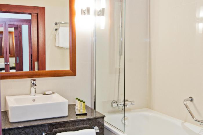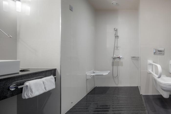Air conditioning and individually adjustable heating ensure that rooms maintain comfortable temperatures. All rooms are carpeted and include a double bed. A safe and a minibar are also available. Additional features include a mini fridge and a tea/coffee station. An ironing set is provided for guests' convenience. A direct dial telephone, a TV, a radio and WiFi are provided as well. Bathrooms are equipped with a shower and a bathtub, as well as a hairdryer. Guests can also reserve wheelchair-friendly rooms with wheelchair-accessible bathrooms. Family rooms are available for parents with children.