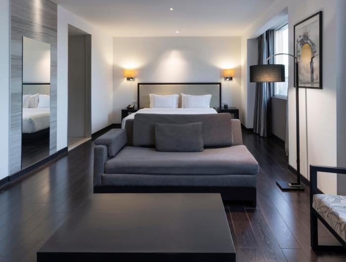Rooms feature a living room and a bathroom. Air conditioning ensures comfortable temperatures. A balcony is among the standard amenities of some rooms. Rooms include a double bed. Separate bedrooms are available. A safe, a minibar and a desk are also available. Guests will also find a tea/coffee station included among the standard features. An ironing set is provided for guests' convenience. A telephone, a television with cable channels and WiFi (no extra charge) are provided as well. A hairdryer and bathrobes are available in the bathrooms, which are equipped with a shower and a bathtub. For extra comfort in the bathrooms, guests are offered cosmetic products. Wheelchair-friendly rooms can be reserved. Family rooms are available for parents with children.