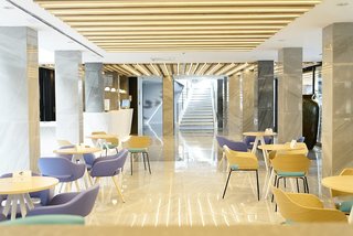 6 single rooms and 93 double rooms are located on 6 stories and can be reached by elevator. Staffed 24 hours a day, the reception desk makes check-in and check-out easy. The apartment hotel provides a safe, a currency exchange service, a TV room, medical assistance and a conference room. Wireless internet access allows guests to stay connected while on vacation. There are a number of shops as well. Guests arriving by car can park their vehicles in the parking lot.