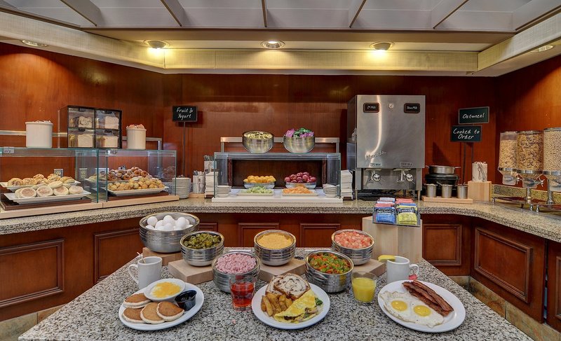 This hotel is dated, the breakfast was terrible, and the evening reception has their own brand of liquor. Room service from Ruth Chris extremely expensive. The furniture has treads that are coming...