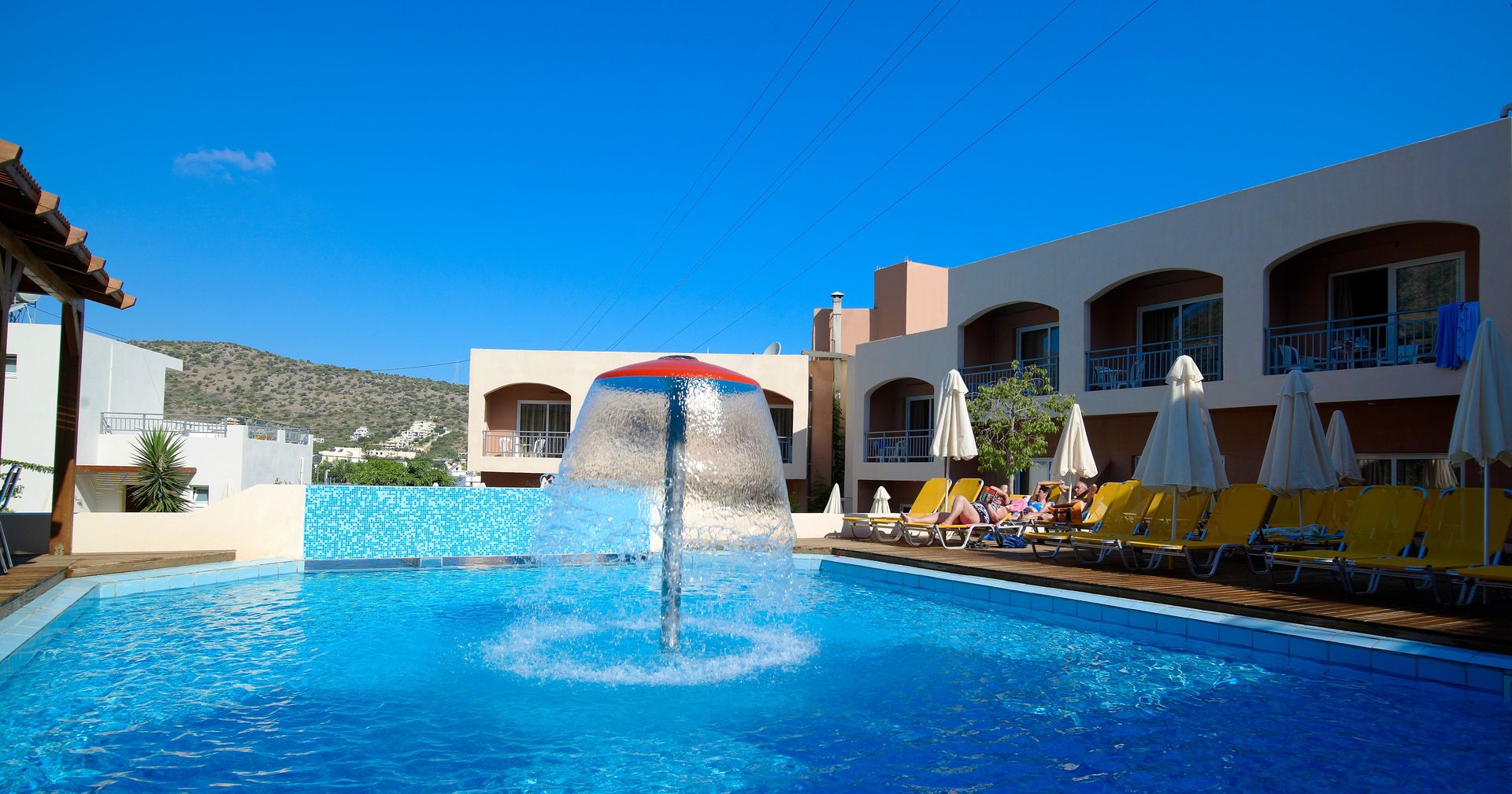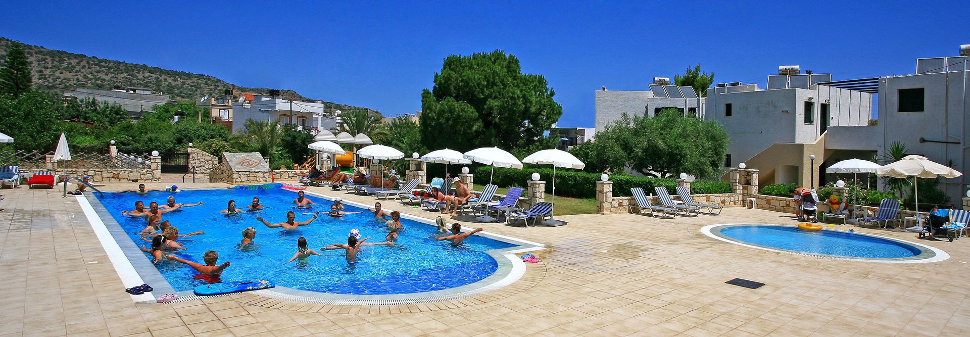 This bungalow complex is located near the beach, in a lively neighborhood right in the heart of Stalis. From here, guests can easily explore the area, and there are many options for recreational activities nearby. A variety of restaurants, bars and shops are just a few yards away. It is about 20 miles to Heraklion (HER) Airport.