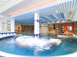 The pool area, which includes indoor and outdoor pools, is the perfect place and relax and recharge. Outdoor lounge chairs and umbrellas on the terrace invite guests to relax and unwind. There are many ways to relax or stay active at the hotel, including tennis, aquafit, a gym, a spa, a steam bath, massage treatments and a solarium.