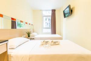 36 double rooms are located on 5 stories and can be reached by elevator. The reception desk in the lobby is staffed around the clock. Services and facilities include a laundry service and a fax machine. Wireless internet access is provided in public areas. Guests arriving by car can park their vehicles in the parking lot.