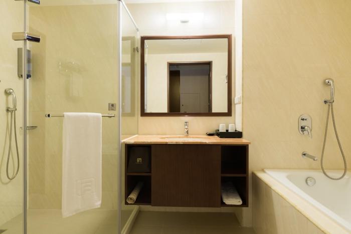 Air conditioning ensures that rooms maintain just the right temperature. Rooms include a double bed. An extra bed is available for a fee. A safe, a minibar and a desk are also available. Additional features include a refrigerator and a tea/coffee station. Equipped with a telephone, satellite television and WiFi (no extra charge), the rooms provide many ways for guests to stay connected and entertained. Slippers are included. Bathrooms are equipped with a shower and a bathtub, as well as a hairdryer. For extra comfort in the bathrooms, guests are offered cosmetic products. Wheelchair-friendly rooms can be reserved. Family rooms are available for parents with children.