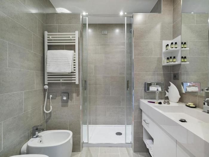 Air conditioning and central heating ensure that rooms maintain comfortable temperatures. Guests can enjoy the sea view from a balcony or terrace. Rooms have a double bed or a sofa bed. Separate bedrooms are available. Children's beds can be requested for younger guests. There is also a safe and, for a fee, a minibar. Equipped with a telephone, a TV and WiFi (no extra charge), the rooms provide many ways for guests to stay connected and entertained. A shower, a bathtub and a whirlpool bath are included the bathrooms. A hairdryer is also provided. The hotel has non-smoking rooms.