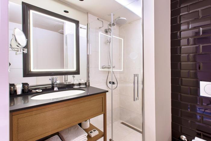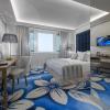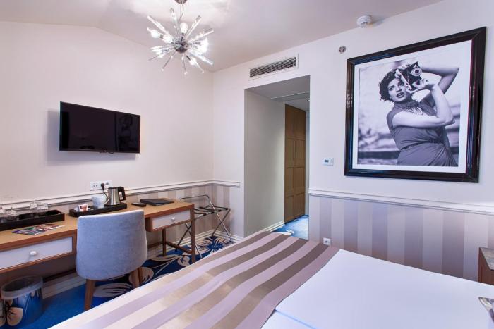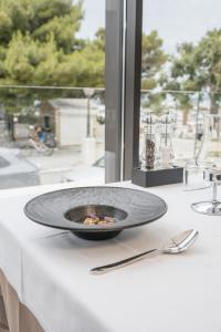 Rooms are equipped with air conditioning and central heating. Guests have a sea view from the balcony or terrace, which are standard features of some rooms. All rooms are carpeted and include a king-size bed or a sofa bed. Children's beds can be requested for younger guests. There is also a safe and a desk or, for an additional fee, a minibar. Guests will also find a tea/coffee station included among the standard features. A telephone, a TV and WiFi (no extra charge) are provided as well. Slippers are included. A hairdryer and bathrobes are available in the bathrooms, which are equipped with a shower and a bathtub. The hotel has non-smoking rooms.