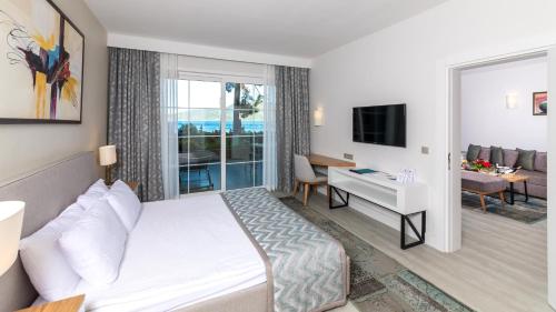 Ideal for beach vacationers and families, this resort lies in Marmaris, right by the sea. Public transportation stops are just outside the door. It is about 60 miles to Dalaman (DLM) Airport.