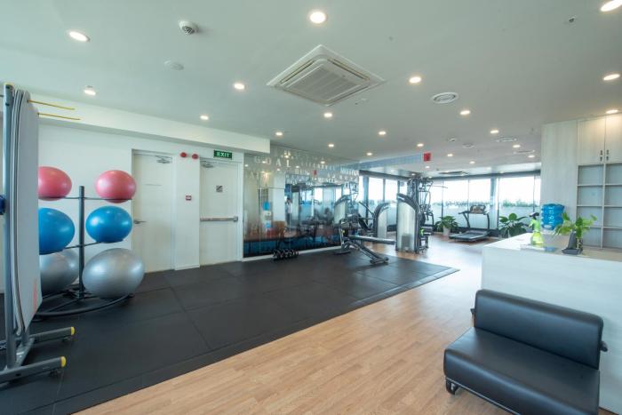 After an eventful day, guests can work out and recharge in the gym.