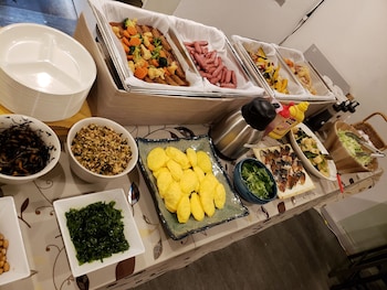 A generous breakfast buffet is prepared every morning.