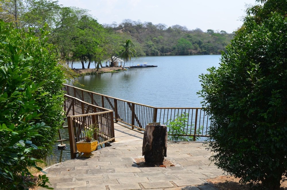 Lejos de Medellín, no tan facil de encontrar, este hotel queda entre bonitas montañas y un lago un poco contaminado con una alga que deben exterminar. Se puede montar en lancha, hay chalecos...