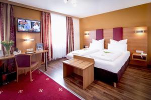 Rooms include a double bed. A safe, a minibar and a desk are also available. For guests' convenience, units include a refrigerator, a mini fridge and a tea/coffee station. Equipped with a telephone, a television with cable channels, a radio and WiFi (no extra charge), the rooms provide many ways for guests to stay connected and entertained. A hairdryer and a vanity mirror are provided in the bathrooms, which include a shower. The hotel has family rooms and non-smoking rooms.