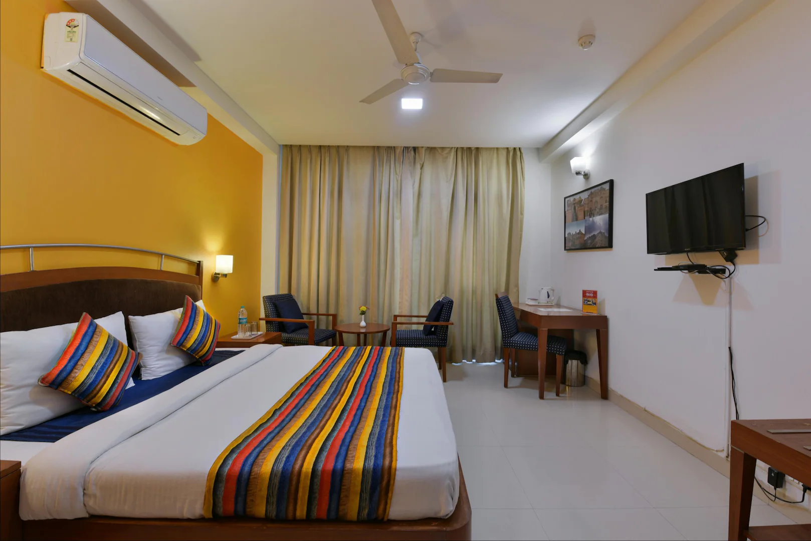 I got the corner room on second floor with two balconies. The room had all amenities and the staff was very very helpful. rare to come across such staff. It is not a jazzy hotel but fully functional...