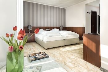 Great connection with Messe. The trip by S6 train takes only 12 minutes, then you can take bus no. 25 for one stop. Hotel is located 5 minutes by foot from the bus station. Old-fashioned rooms. I...