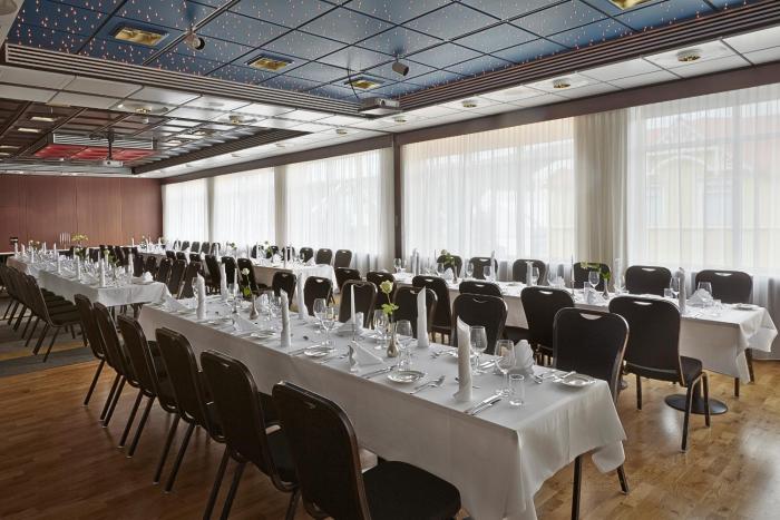 Dining facilities include a restaurant, a breakfast room, a café and a bar. A generous breakfast buffet and a dinner à la carte are served every day.
