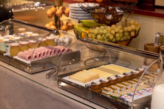 A generous breakfast buffet guarantees a great start to the day.