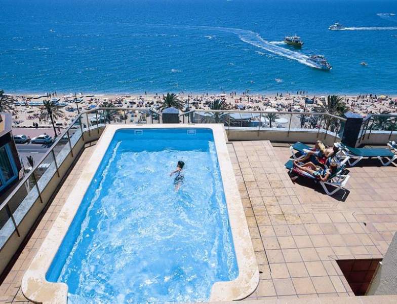 This hotel is located in the heart of Lloret de Mar, just a few steps from the sandy beach, with various options for recreational activities nearby. Bars, restaurants, shops, nightclubs and public transportation are on the doorstep. The nearest airport is Gerona (GRO), located about 20 miles away. Barcelona (BCN) Airport is approximately 60 miles away.
