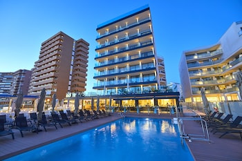 We had a lovely room overlooking beach, we had half board deal, only booked that as just £10 each to have dinner included. Buffet - but very good, staff great!! Playa de Palma had very long...