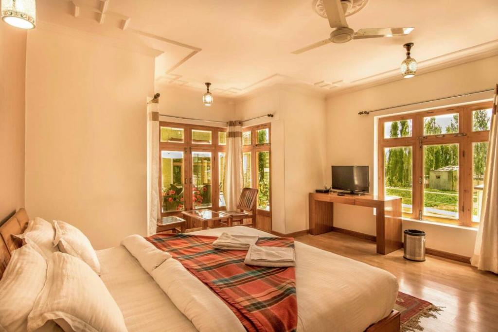 Sited In Ladakh, The Hotel Om Ladakh Is Set In Leh. The Property Is Approximately 2.9 Mi (4.7Km) Away From The Kushok Bakula Rimpocher Airport, 1.6 Mi (2.7Km) From Shanti Stupa, 1.98 Mi (3.2Km) From Namgyal Tsemo Gomp. The Main Bazaar Is 0.74 Mi (1.2Km), Soma Gompa Is 0.68 Mi (1.1Km), And War Museum Is 2.67 Mi (4.3Km) Away From The Accommodation.