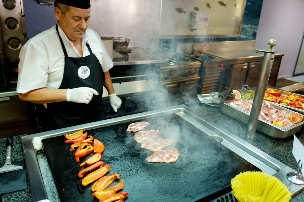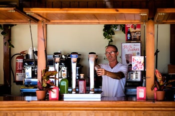 Reception most welcoming and the dining room staff were very pleasant. Not happy with the bar staff ,very inefficient and not busy but kept waiting and appeared that all inclusive took preference...