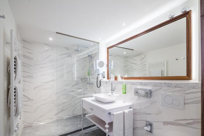 Rooms are equipped with air conditioning and individually adjustable heating. All rooms are carpeted and include a double bed. Children's beds can be requested for younger guests. A safe and a minibar are also available. A mini fridge and a tea/coffee station are standard features. A direct dial telephone, a TV, a radio and WiFi (no extra charge) are provided as well. Bathrooms are equipped with a shower and a bathtub, as well as a hairdryer. The hotel has 120 non-smoking rooms.