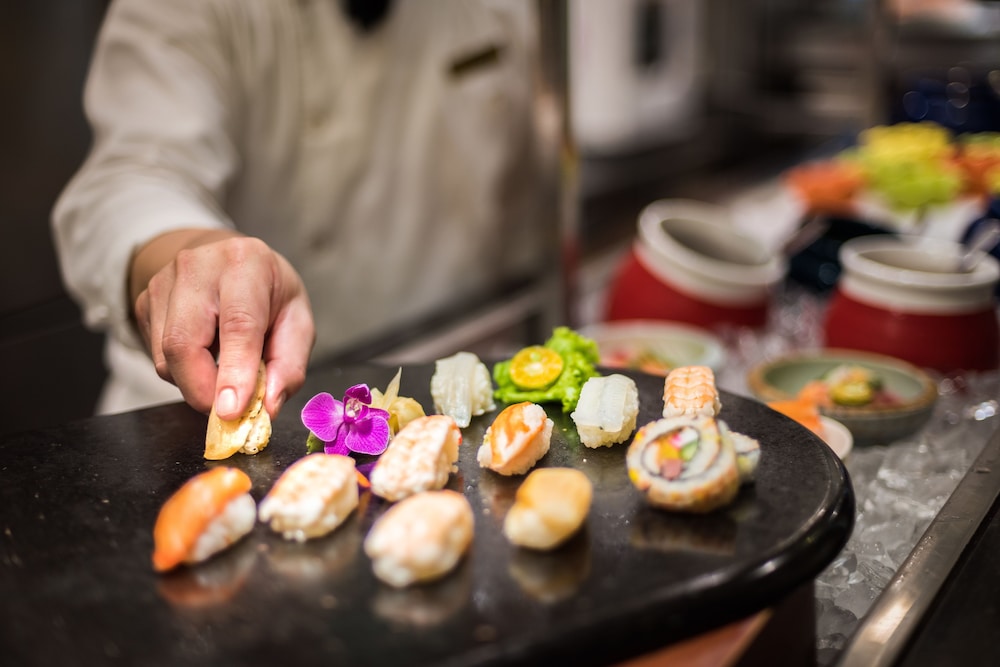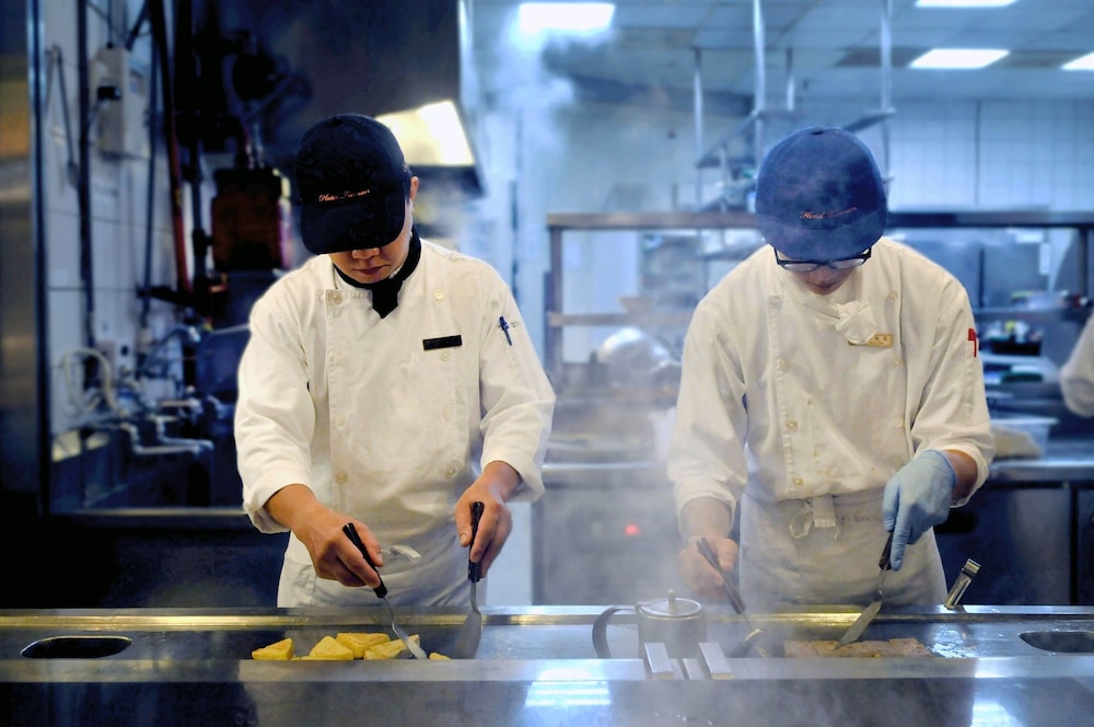 The hotel features dining services including a dining room and a breakfast room. A wide variety of dishes are served at all three main mealtimes. Guests can enjoy lunch and dinner as a set menu.