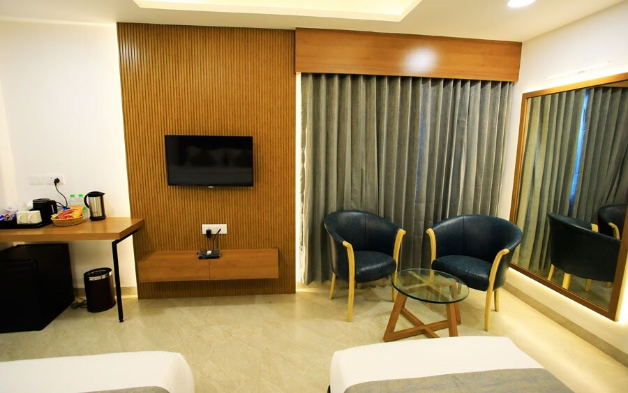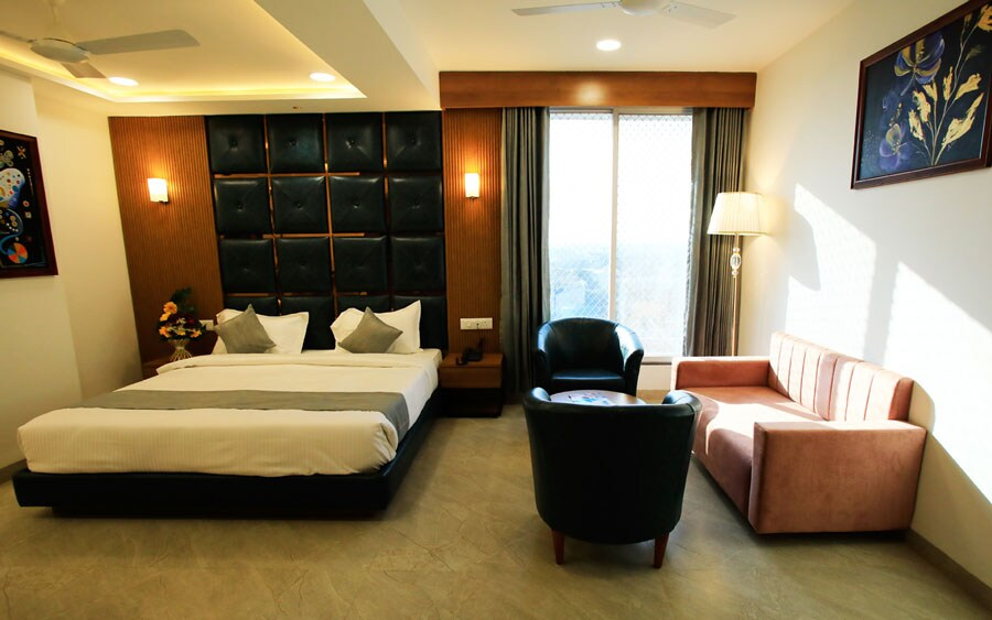 Welcome to "Hotel the Grand," your refined haven in the heart of Indore, just opposite the Railway Station. We take pride in offering a distinguished stay, combining luxury, accessibility, and thoughtful perks.At "Hotel the Grand," our well-appointed rooms and suites are designed for your comfort and relaxation. As our valued guest, you not only experience the epitome of hospitality but also enjoy the convenience of a complimentary breakfast, ensuring a delightful start to each day of your stay.Our strategic location, just opposite the Railway Station, provides you with seamless access to Indore's vibrant attractions, shopping districts, and business centres. Whether you're here for business or leisure, our commitment is to make your stay memorable and effortless.Indulge your taste buds at nearer Raghavam restaurants, where a delightful array of culinary experiences awaits you. From local flavours to international cuisines, savour each bite in a welcoming ambiance crafted for an unforgettable dining experience.For your special occasions and events, Raghavam banquet facilities offer versatile spaces, ensuring that your celebrations are hosted with flair and precision.At "Hotel the Grand," we strive to elevate your stay, offering not just accommodation but a curated experience where every detail is designed for your satisfaction. Experience the grandeur of hospitality, where complimentary breakfast is just one of the many ways we make your stay exceptional. Welcome to a world of indulgence and convenience