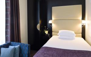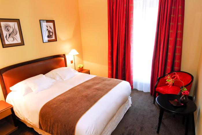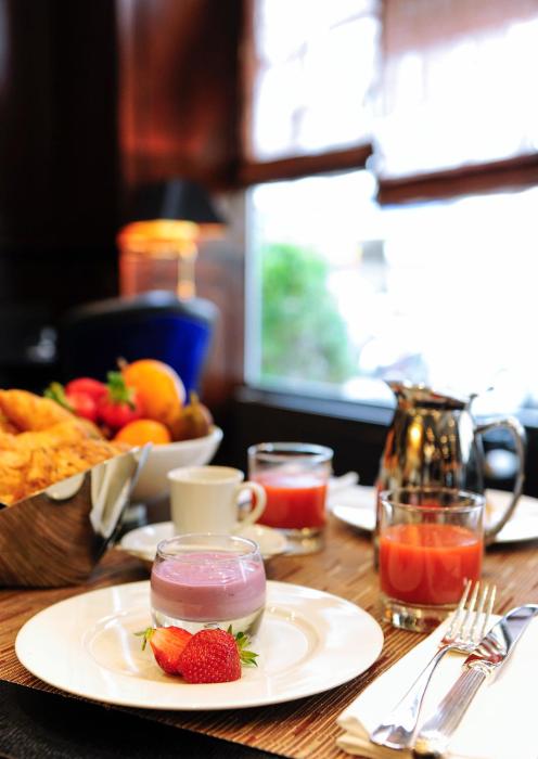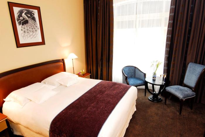 The hotel was built in 1900. Guests have a choice of 3 suites, 5 single rooms and 38 double rooms located in two 5-story buildings with elevators. The reception desk is open around the clock. Amenities include a coat check, a safe and a currency exchange service. Wireless internet access in public areas allows guests to stay connected. There are a number of shops as well. Additional facilities include a library. Guests arriving by car can park their vehicles in the garage or in the parking lot. Further services and facilities include room service and a laundry service.