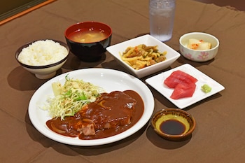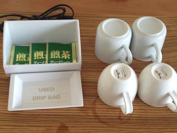 A few minutes walk to the port, restaurants, bars and the Family Mart. The beds are just a twin ( Japanese double) but the room is bigger than normal for Japan. Free coffee in the lobby (instant...