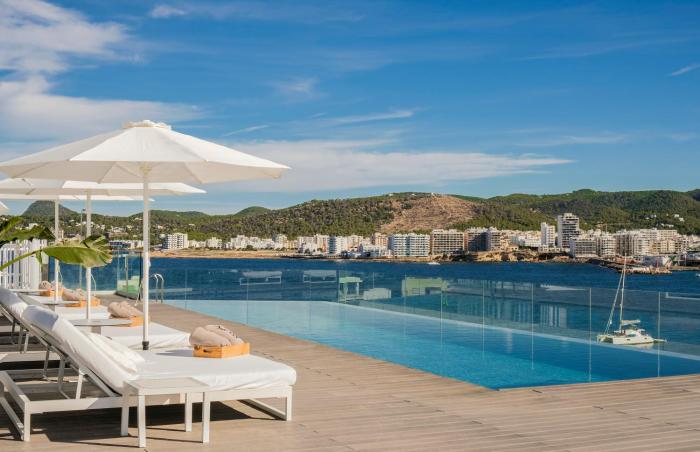 Great location, clean and spacious rooms with fabulous views over the sea! Taxi to the Ibiza strip about 10 euros! Loved the rooftop bar and being able to see over the sea was stunning! Pool bar...