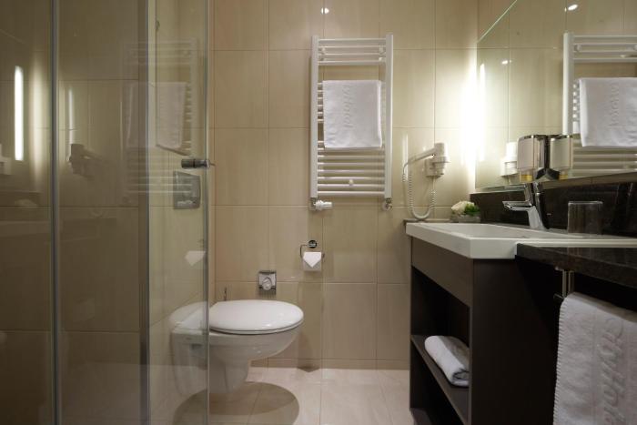 Air conditioning and individually adjustable heating ensure that rooms maintain comfortable temperatures. All rooms are carpeted and have a double bed or a king-size bed. A safe, a minibar and a desk are also available. Guests will also find a mini fridge included among the standard features. Internet access, a direct dial telephone, a television with satellite/cable channels and a radio provide all the essentials for a comfortable vacation. Bathrooms are equipped with a shower and a hairdryer. Wheelchair-friendly rooms can be reserved. The hotel has family rooms and non-smoking rooms.
